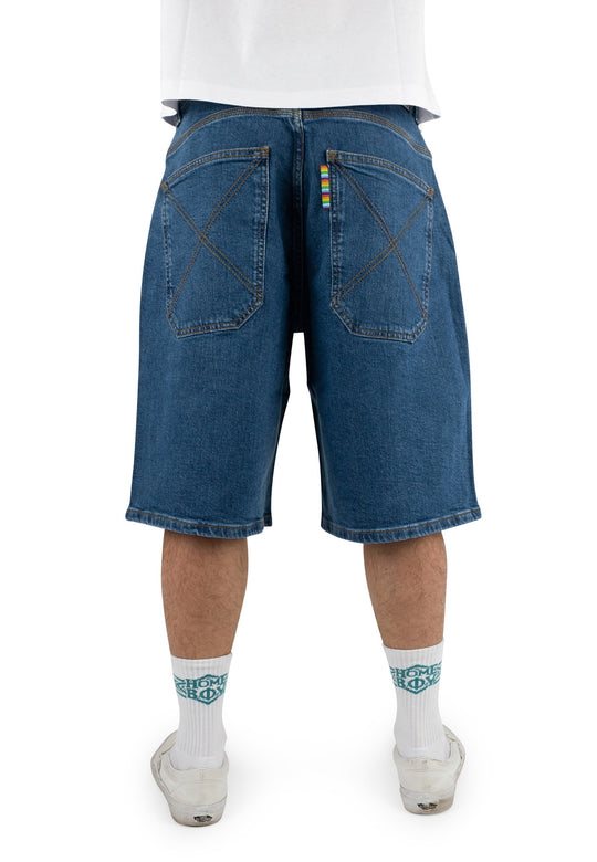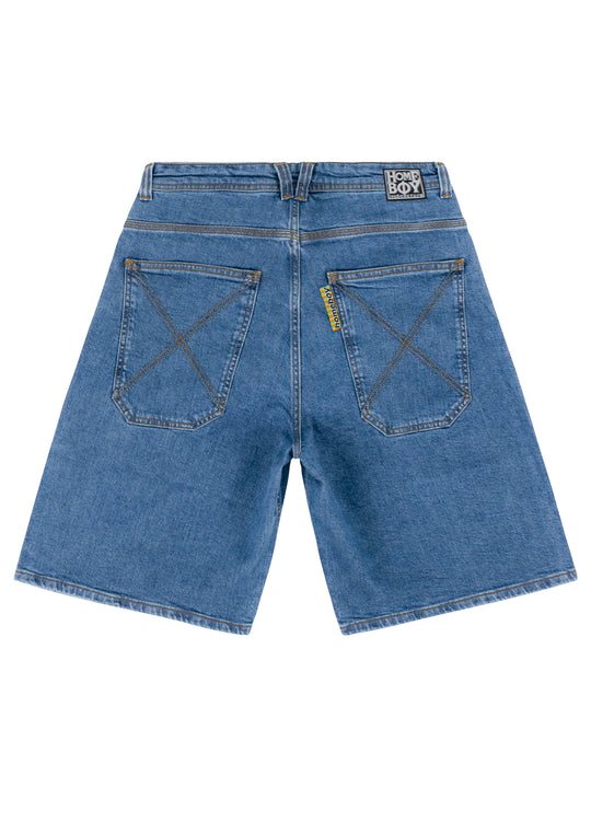 De shorts voor de zomer! Met deze superbrede baggy denim shorts in een lichte washing heb je gegarandeerd voldoende beenruimte, zelfs op warme dagen tijdens een skatesessie of gewoon op weg naar het strand. De look van de short is gebaseerd op het origineel uit de jaren 90, maar heeft een moderne en vooruitstrevende snit. Details zoals het ‘homeboy x-tra’-borduurwerk, de X-naad op de achterzakken beloven OG-vibes.